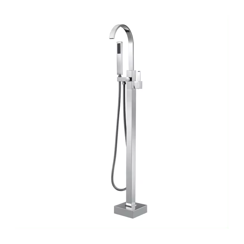 Square Curve Freestanding Silver Chrome Plated Bath Tap With Shower