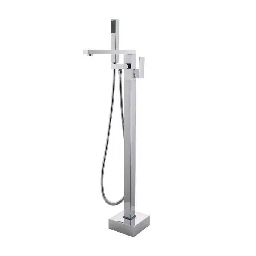 Straight Freestanding Silver Chrome Plated Bath Tap With Shower