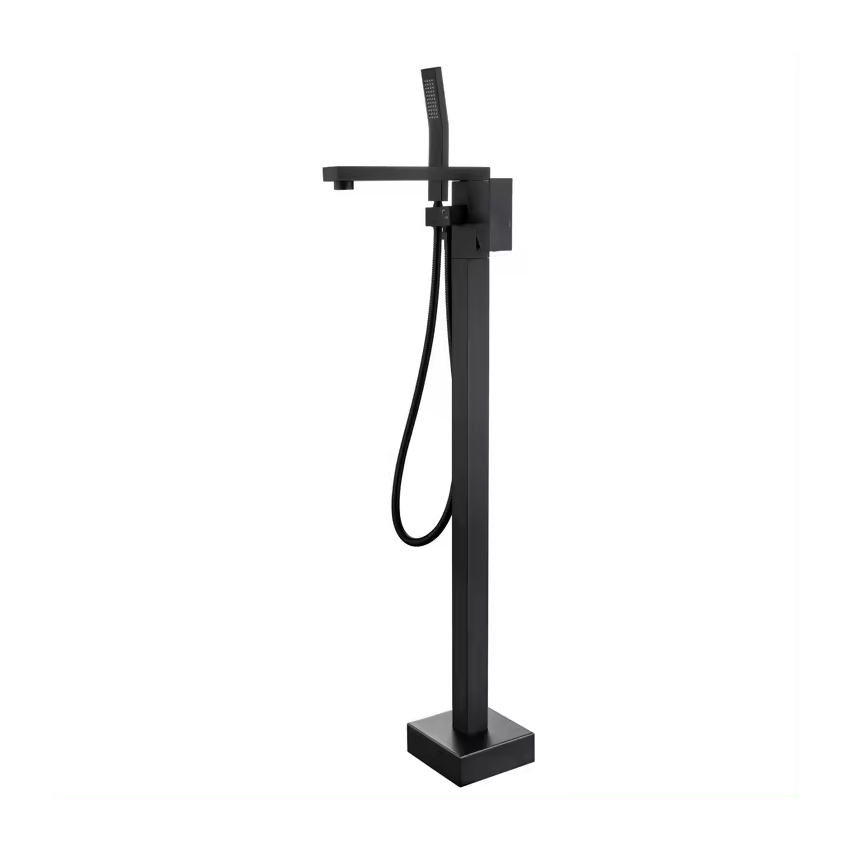 Straight Freestanding Matt Black Bath Tap With Shower
